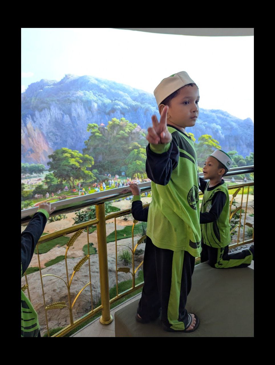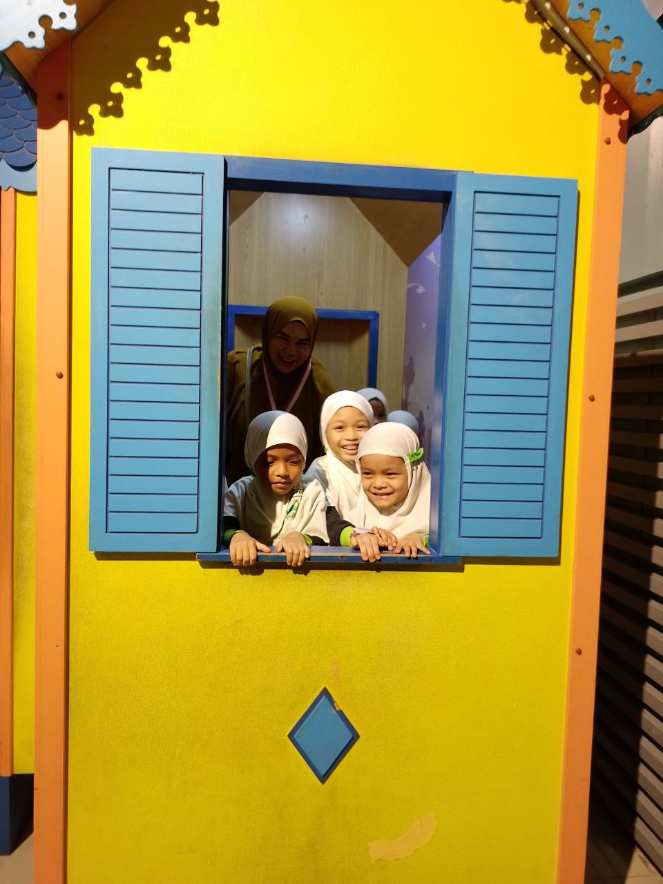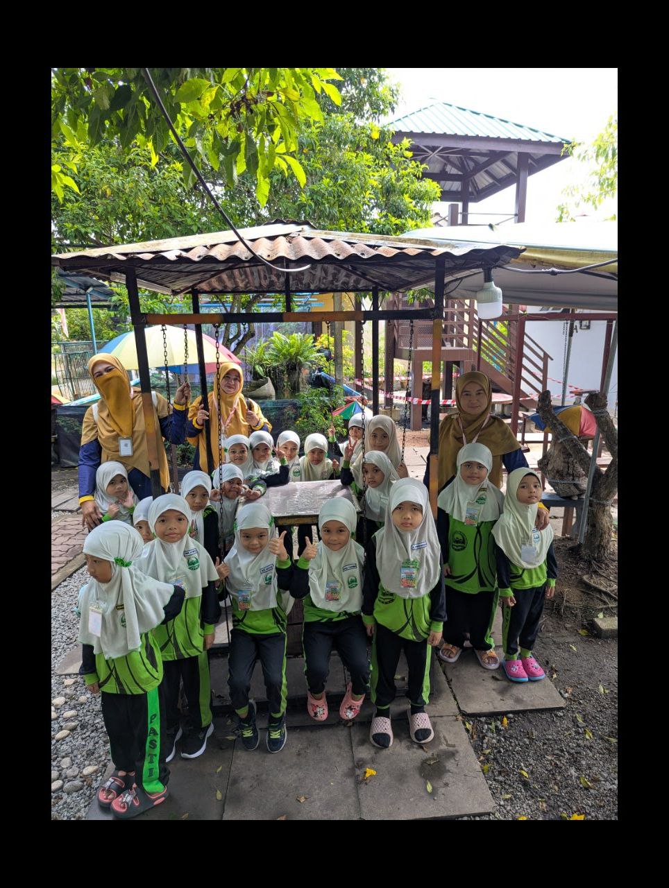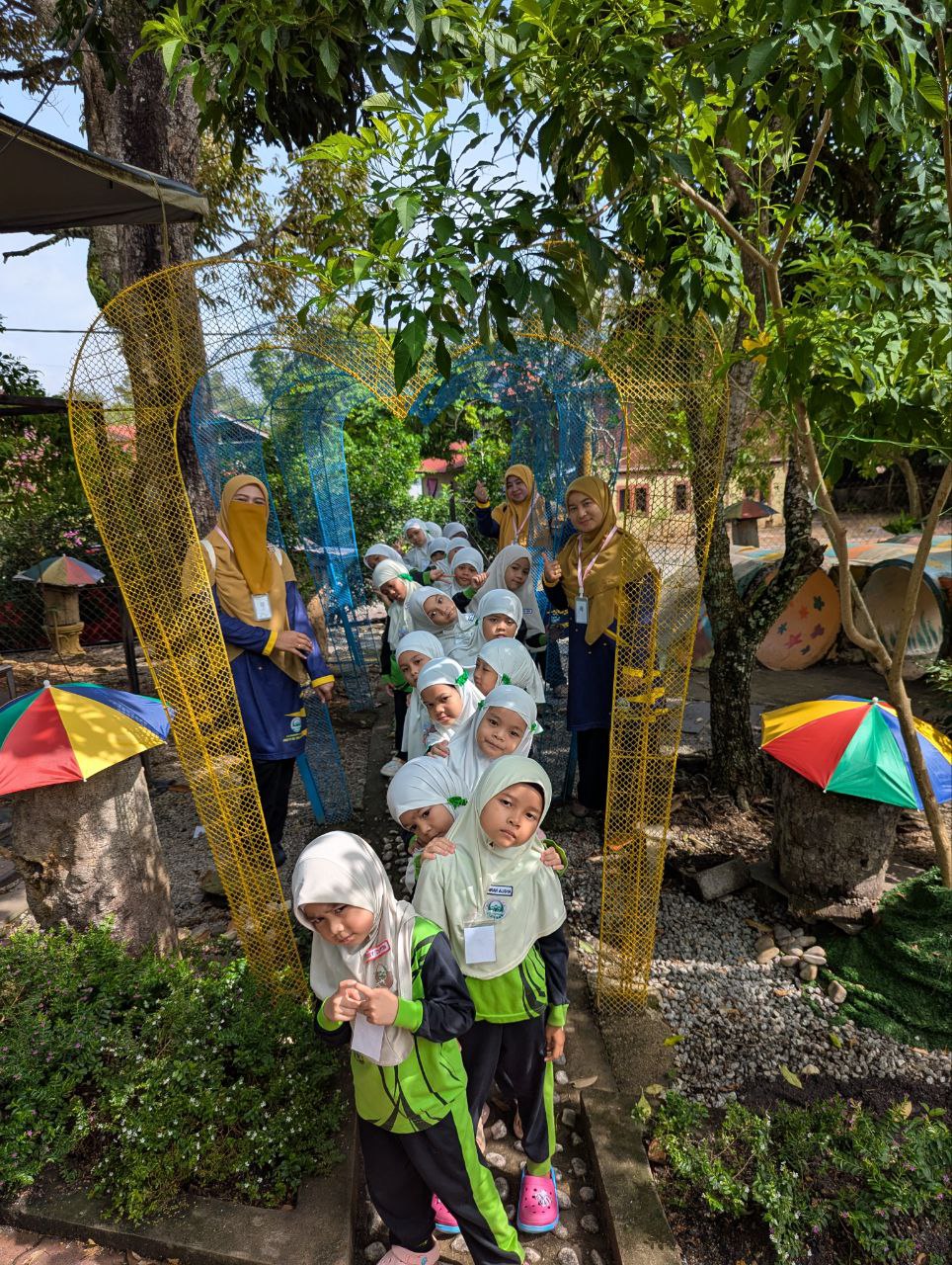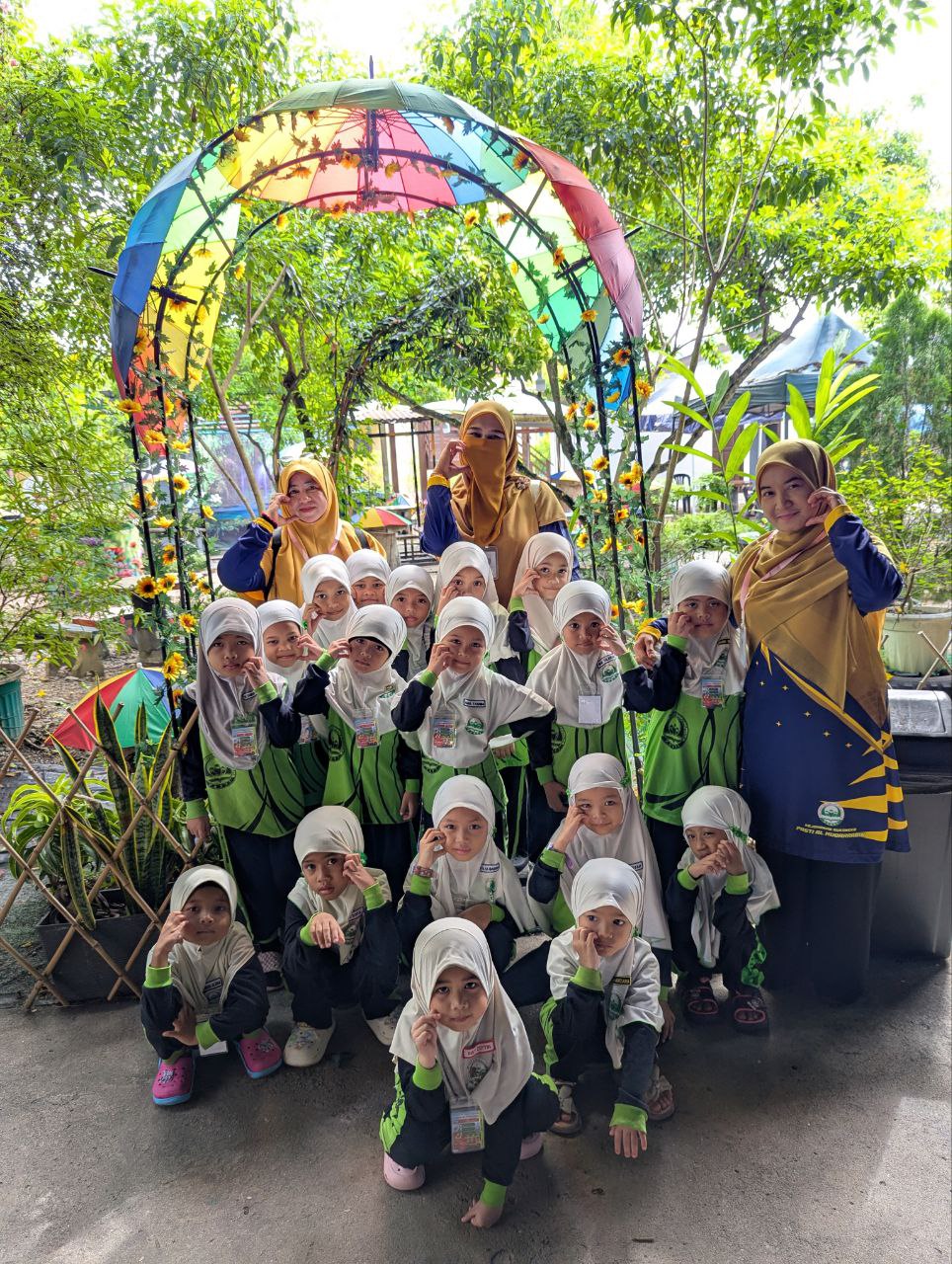 dapat bergambar bersama-sama dengan guru-guru kesayangan mereka sambil melihat pameran yang disediakan