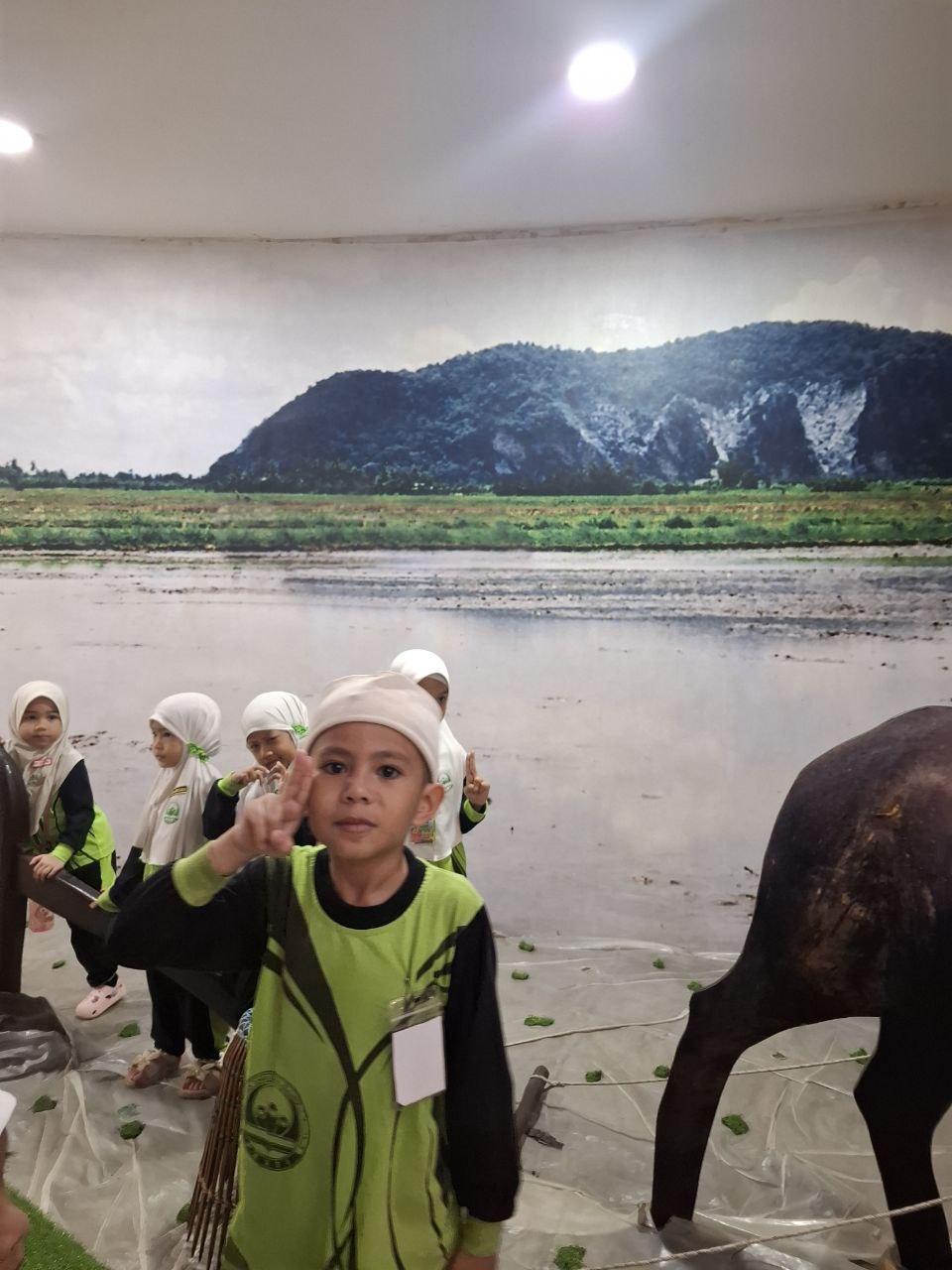 besar seolah-olah mereka sedang berada dalam suasana kehidupan masyarakat yang dikelilingi sawah padi. Pelajar