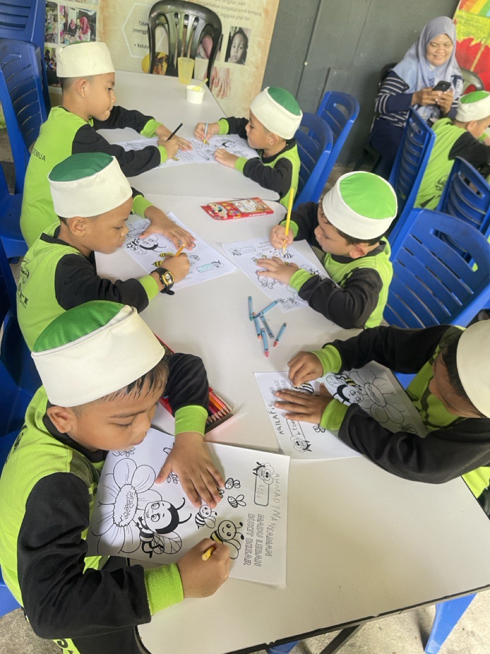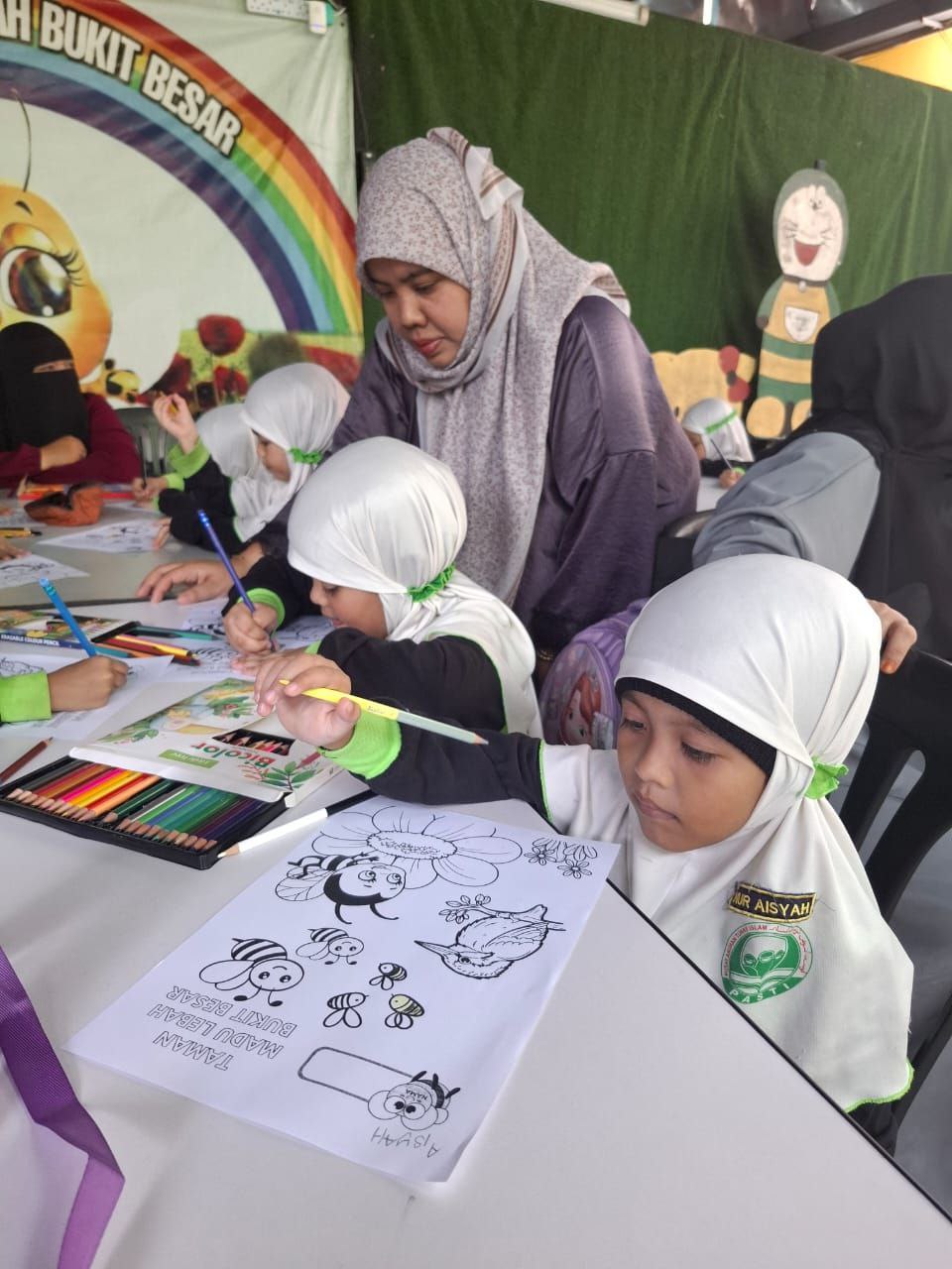 sampingan turut diadakan seperti aktiviti mewarna tentang gambaran spesis lebah. Pihak pemilik Taman Lebah juga