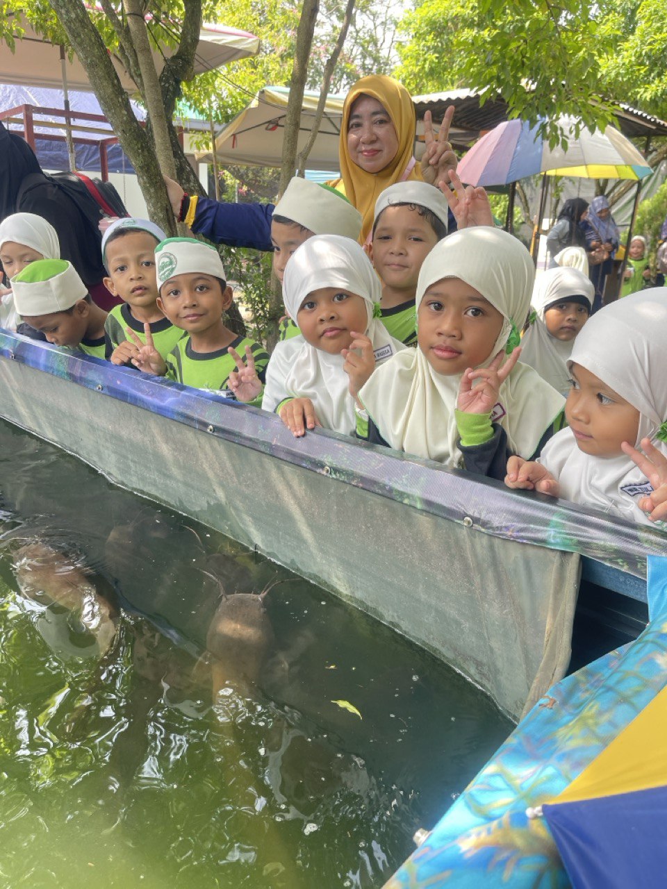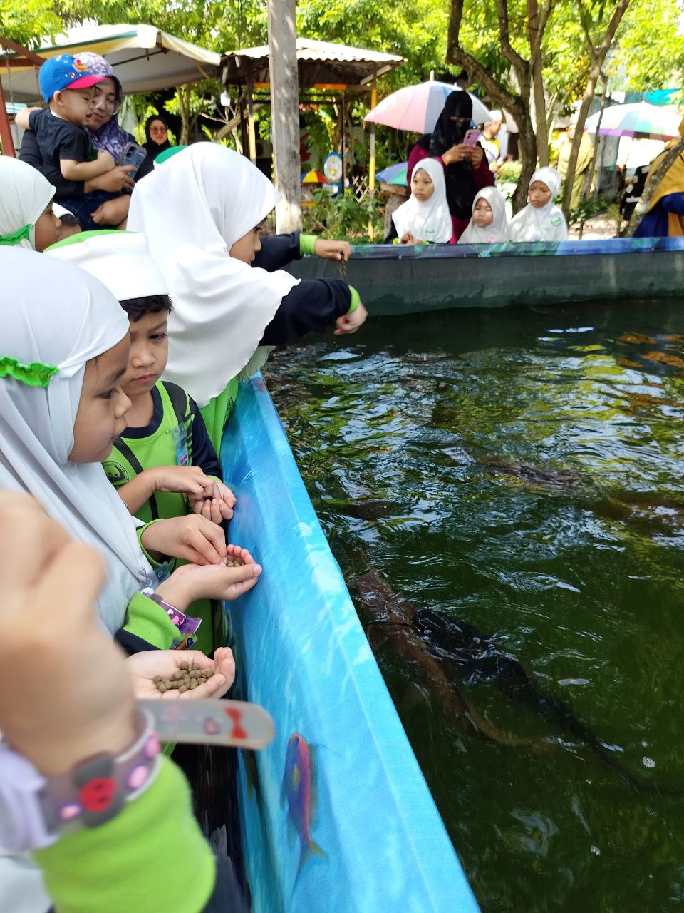 merasa madu kelulut tersebut. Pelajar diberi peluang memberi makanan ikan keli yang dibela di dalam kolam. Aktiviti